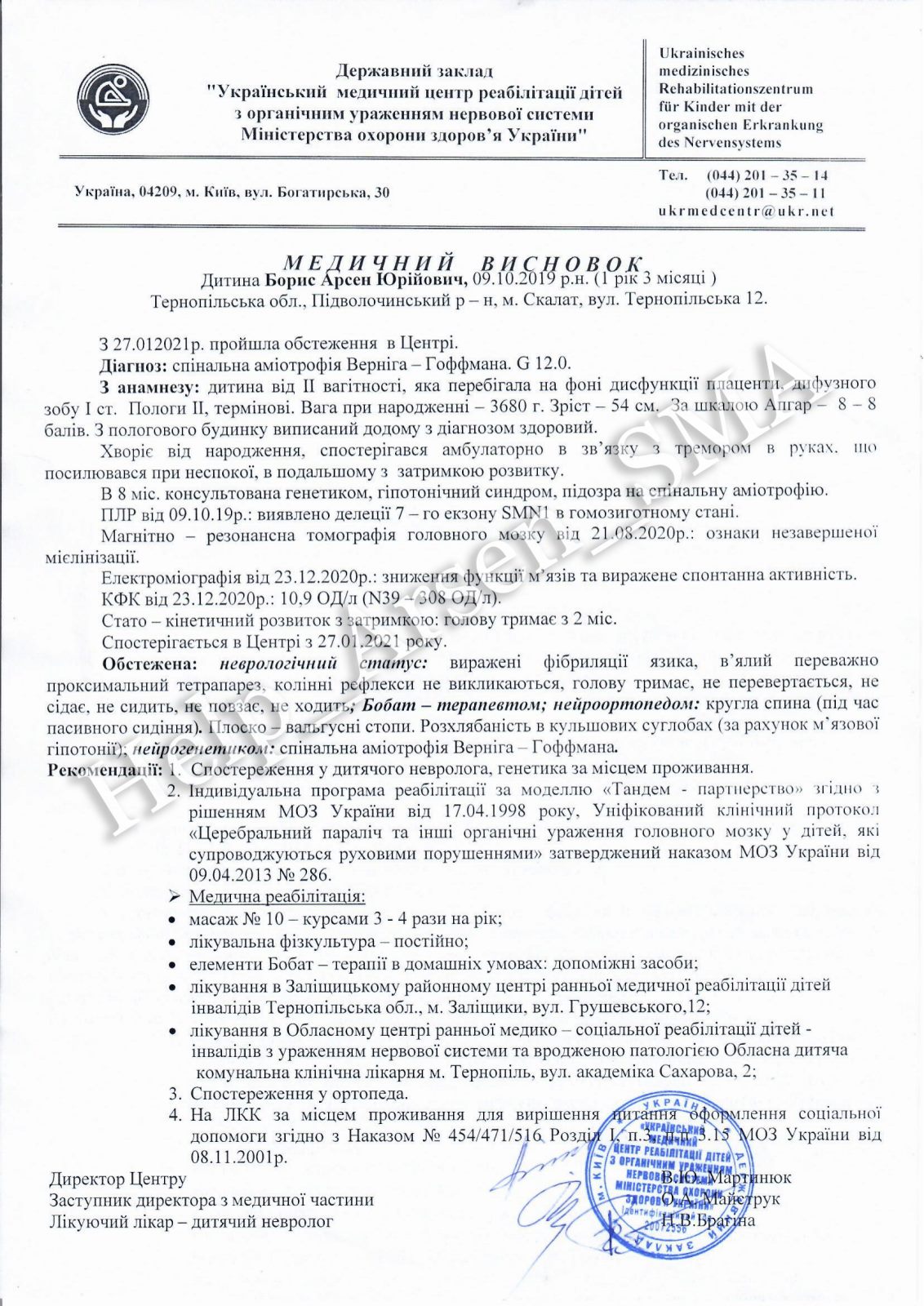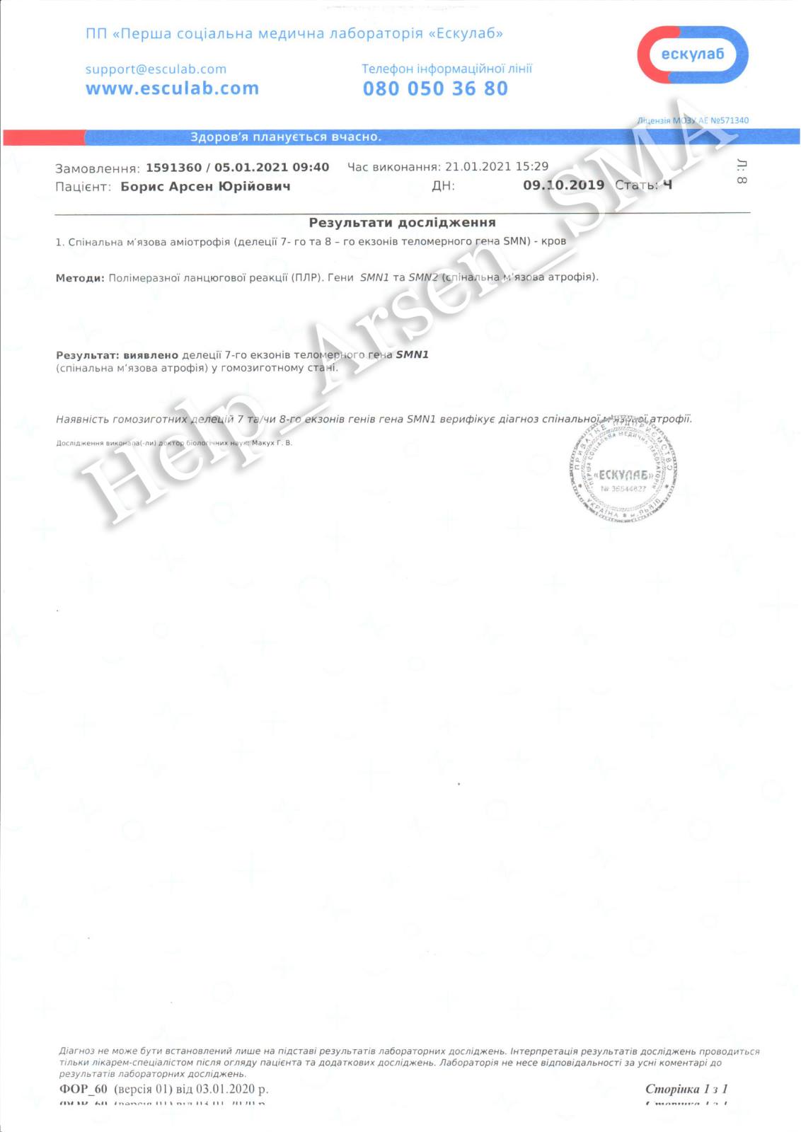 Лихо спіткало молоду сім’ю Борис з м. Скалат: їхній молодший синочок Арсенко хворіє страшною недугою. Після обстеження в державному закладі «Українському медичному центрі реабілітації дітей з органічним ураженням нервової системи Міністерства охорони здоров’я України» дитині підтвердили діагноз СМА (спінальна аміотрофія Вердніга-Гоффмана) ІІ ступеня.