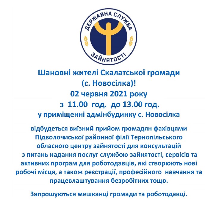 Відбудеться виїзний прийом громадян фахівцями Підволочиської районної філії Тернопільського обласного центру зайнятості для консультацій з питань надання послуг службою зайнятості